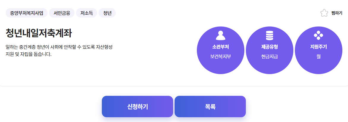 이렇게 복지로 사이트를 통해 해당기간에 청년내일저축계좌를 바로 신청할 수 있습니다.